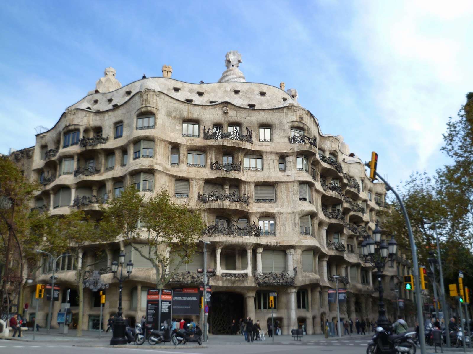 O primeiro monumento que vimos foi a Casa Batló aquilo é bonito por fora :) Subimos mais um bocadinho e lá encontramos a La Pedrera e tenho uma pergunta a fazer: a droga na altura devia ser muito baratinha, porque aquilo é tudo marado! Quem é que se lembra de fazer um edifício sem zonas rectas?! É que até o tecto é todo ondulado!E existem pessoas a lá viverem, deve ser brutal!! Ah! Aquilo tem o módico preço de 15€ por pessoa para entrar, coisa que não fizemos.