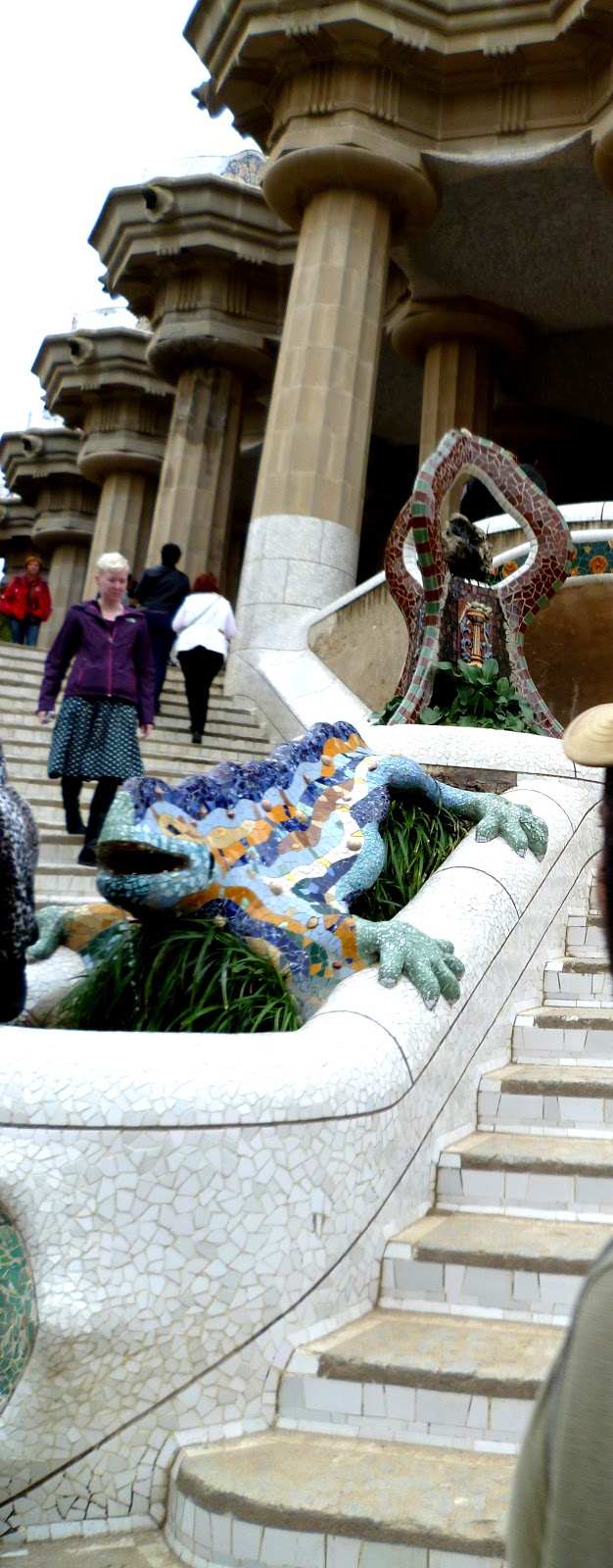 Almoçamos por lá (MacDonalds que o Burguer King é carissimo!) e fomos até ao Parque Guëll, subimos tanto, mas tanto, mas taaaanto!Quem é que se lembra de por aquilo tão longe?!Dissemos que iríamos entrar mesmo que fosse a pagar, já que não tínhamos gasto dinheiro em nada de monumentos; mas quando lá chegamos vimos que não se pagava nada YEEEAH! É muito giro! É lá que está o famoso lagarto (ninguém consegue tirar uma foto sozinho com o lagarto: DAMN IT!). Apanhamos o tempo meio a chuviscar mas mesmo assim foi bem agradável, tinha lá um grupinho a tocar música. Muito giro, mesmo! Aconselho.